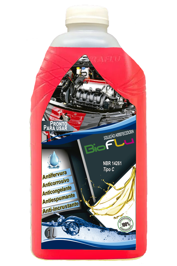 BIOFLU para arrefecimento possui uma formulação balanceada à base de glicóis e inibidores de corrosão orgânicos que foram desenvolvidos com a mais alta tecnologia para oferecer máxima proteção ao sistema de arrefecimento de motores endotérmicos de motocicletas, automóveis, utilitários, caminhões, máquinas agrícolas e motores estacionários. Atende a NBR 14261 Tipo C. ISENTO DE NITRITOS, FOSFATOS, BORATOS, SILICATOS E AMINAS. Faça a troca do fluido sempre que houver manutenção no sistema ou conforme informação do fabricante. Validade: 4 anos da data de fabricação sempre que armazenado tampado em local limpo, seco e abrigado da luze do calor. Recomendável a troca a cada 120.000km ou 4 anos de uso.